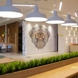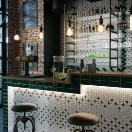 Мозаика.Сочетаема в любом дизайне, что позволяет использовать ее как в качестве декоративного элемента, так и для отдельного покрытия определенных мест (бассейнов, предкаминного пространства и т. д.).